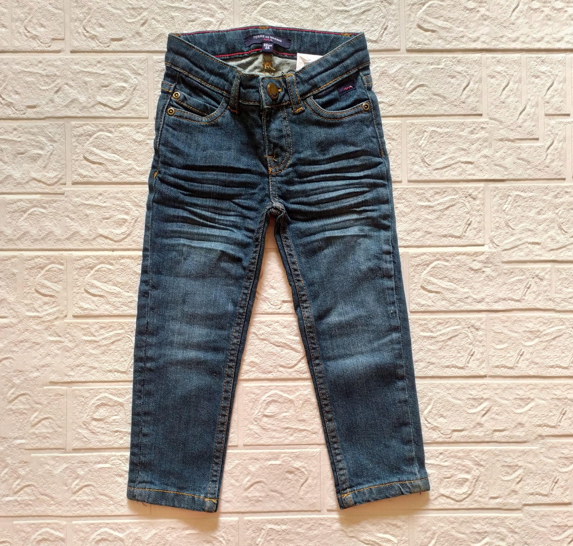 These kids' blue jeans are crafted from durable washed denim, offering both comfort and style for everyday wear. Designed specifically for boys, they provide a casual yet polished look suitable for various activities. The fabric’s softness ensures ease of movement, making them ideal for active children. Their classic design pairs effortlessly with a range of tops, making these jeans a versatile addition to any young wardrobe.
